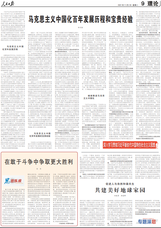 11月2日《人民日报》09版刊登重头理论文章《马克思主义中国化百年发展历程和宝贵经验》
