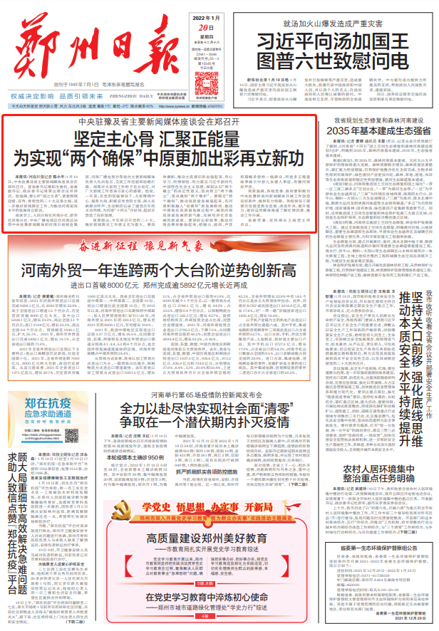 座谈会上,人民日报社河南分社、新华社河南分社、中央广播电视总台河南总站等中央驻豫新闻媒体和河南日报报业集团、河南广播电视台等省内主要新闻媒体负责人先后发言,交流工作经验和思路打算。周霁对大家的工作给予充分肯定,对广大新闻工作者表示衷心的感谢。他说,一年来,在党的坚强领导下,大家围绕中心、服务大局,积极宣传党的主张,深入反映群众呼声,生动鲜活记录了建党百年的丰功伟绩,为河南“十四五”开好局、起好步营造了良好氛围。