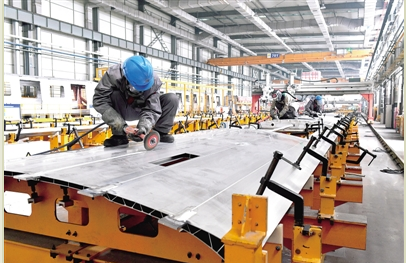 如果说嵩基水泥代表了传统行业,那么明泰交通新材料则是新材料行业的翘楚。在郑州明泰交通新材料有限公司,偌大的车间,干净整洁、视野通透,很难想象这是一座焊接车间。