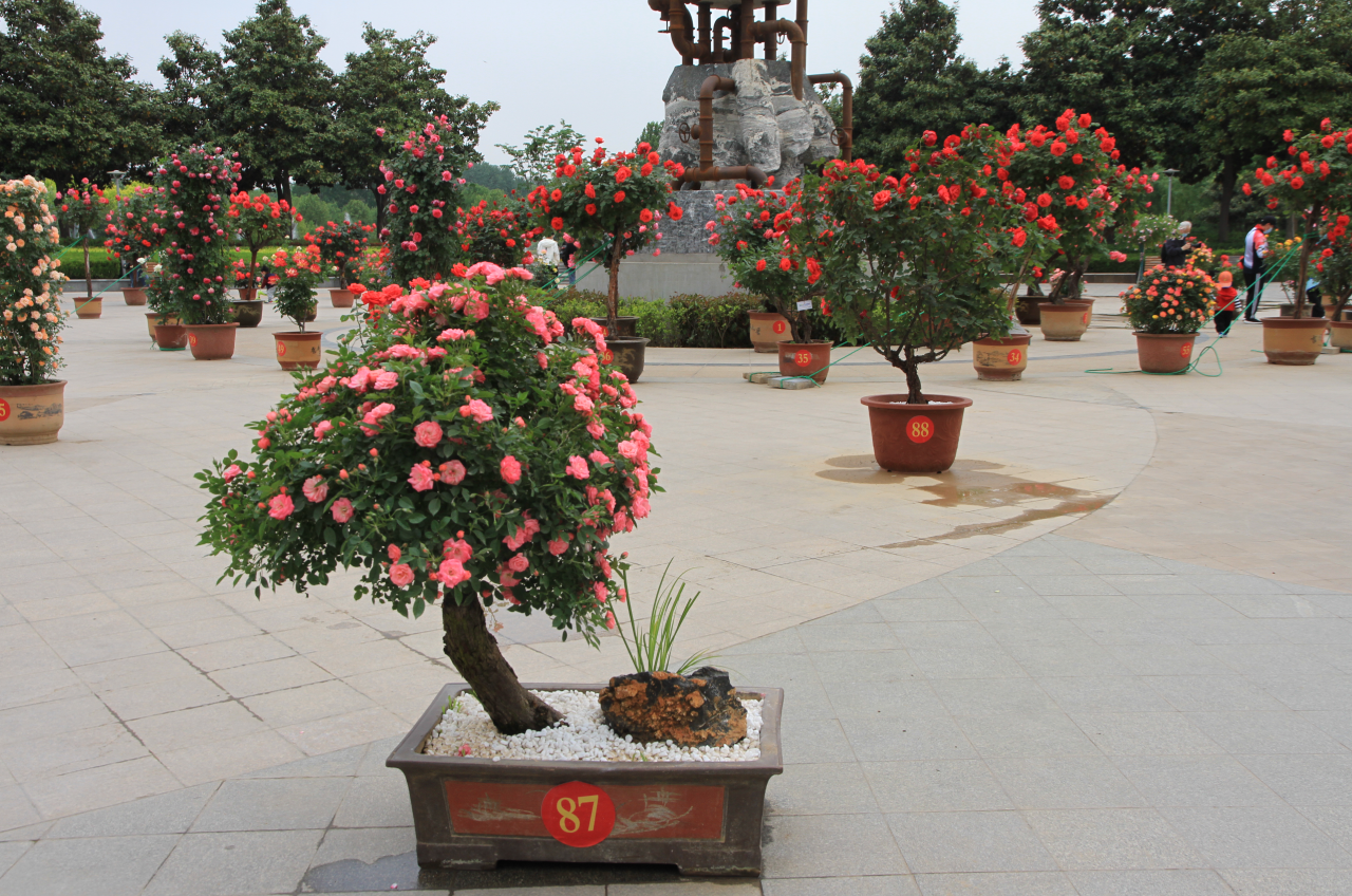 4月28日至5月9日,植物园西门科普广场开展精品盆栽月季展,展示园林系统选送的110盆精品盆栽月季。