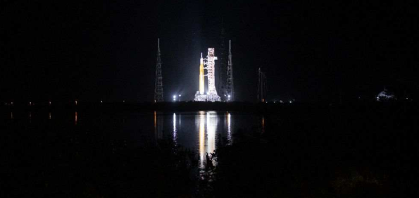 ▼美国新一代登月火箭重回发射台 准备再次尝试升空