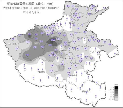 据河南省气象台监测显示,8日8时至13日6时,全省累计平均降水量17.8毫米,最大累计降水量周口32.8毫米,最大降雪量嵩山28.3毫米。其中,8日8时至9日20时,全省大部出现小雨雪天气,其中三门峡、洛阳、郑州、平顶山、焦作部分县市出现中到大雪。10日17时至13日6时,全省大部出现小雨雪,其中嵩山、嵩县、栾川出现中到大雪,周口、漯河、驻马店、信阳等地部分县市有中雨。