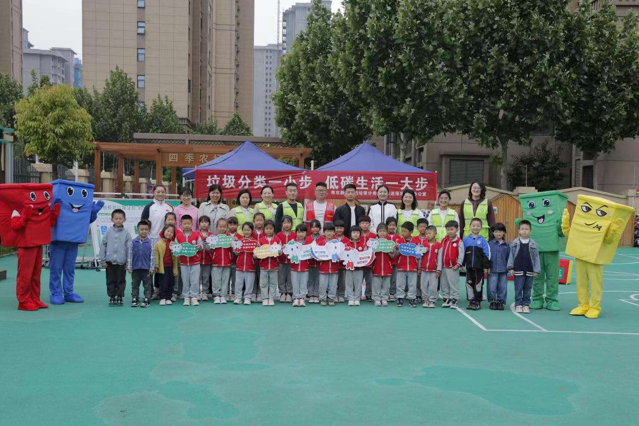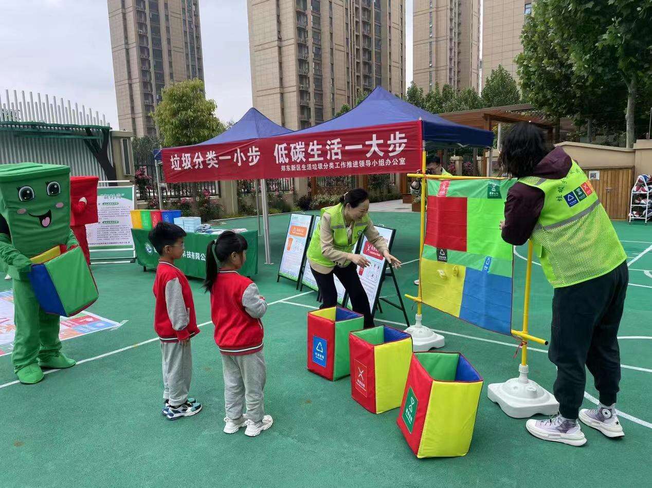 为深入推进辖区生活垃圾分类工作,提高群众分类意识,5月5日上午,郑东新区金光路办事处按照社区(单位)全覆盖、年龄段全覆盖、各行各业全覆盖的“三覆盖”宣传理念,联合郑汴建投集团郑州市东象环保科技有限公司、郑东新区综合行政执法局(城市管理局)分类办在郑东新区永嘉二幼开展垃圾分类宣传活动。