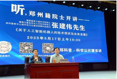 启动仪式上,德国国家工程科学院院士、德国汉堡自然与人文科学院院士、郑州国家中心城市现代化建设特聘科技顾问张建伟做了题为“人工智能、机器人和我们”的主题讲座,这意味着,我市“郑科普·科学公开课”活动正式“开讲”。