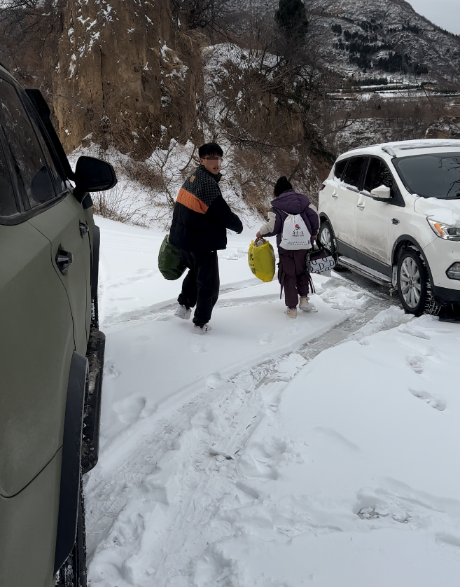 由于这些孩子家都是在山区,路非常不好走。“特别是新密和巩义这边儿,山路特别滑,一路上也比较惊险。”载着新密4个孩子回家的程相朋说,他开车途中碰到了很多事故,其中有两辆车滑到沟里边儿了,他们用车上所带的应急救援装备,把掉在沟里边儿的拖上来了。