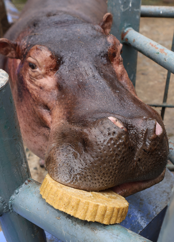 过中秋吃“月饼”,对郑州市动物园的“资深”居民河马、大象来说已司空见惯,一见到熟悉的五谷杂粮“月饼”,它们便顺理成章地吃了起来。