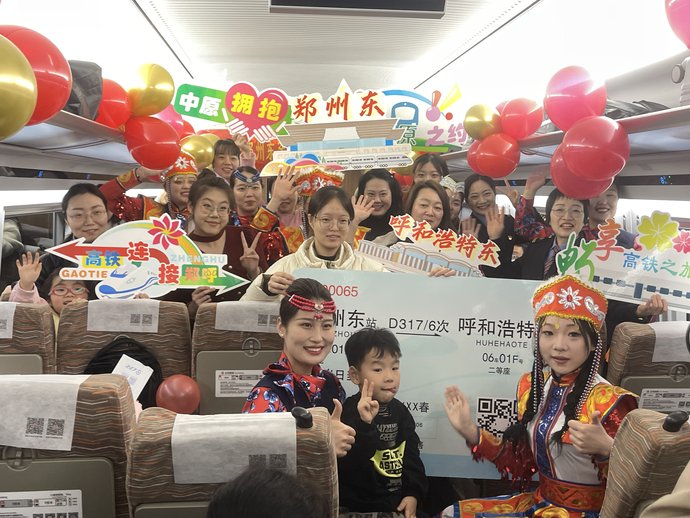 早上7时4分,随着由郑州客运段高铁一队担当的首趟D317/6/7次郑州东至呼和浩特东的列车准时发出,标志着郑州至呼和浩特新线路开通运行。列车上,“畅享高铁之旅 共赴草原之约”主题的新线路开通活动,古装舞蹈《美丽的草原》、诗朗诵《高铁与草原之约》、古筝演奏《声声慢》、歌曲串烧《我和草原有个约定》《我从草原来》《火红的萨日朗》等与旅客互动氛围浓厚。据介绍,郑州东至呼和浩特东列车的开行,既是连接豫蒙区域交通的“加速器”,豫蒙时空距离锐减,朝发夕至让日常游子归乡、旅人出游畅行无阻,亦是经济“新纽带”,串起沿线产业园区,激活区域经济潜能,同时,它更是文化“传播桥”,加速推进中原与内蒙地区文化深度交融,沿线古建魅力得以广传。
