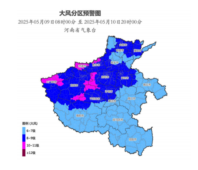 5月8日,来自市气象台的重要消息,受冷空气影响,9日我市将出现4~5级西北风,阵风8~9级,西部山区局地可达10级,主要强风时段在9日11时到21时。
