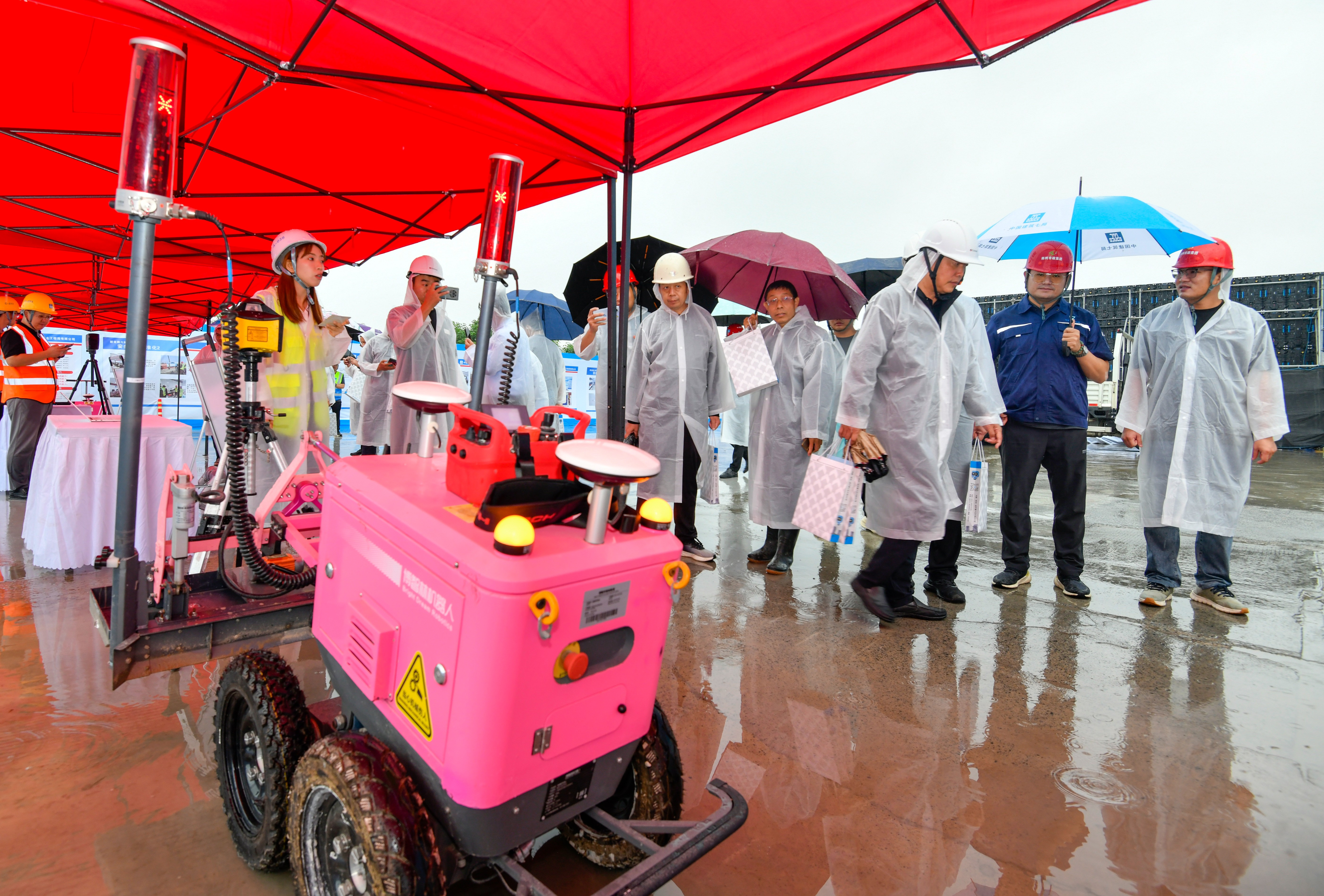智慧工地管理平台、 AR智慧桌面、智慧物料系统生动诠释智慧赋能;地面整平机器人、巡检机器狗等新设备快速提高工地生产效率,为品质建筑筑基……9月4日上午,在绵绵秋雨中,2025年郑州市建设工程质量月启动仪式暨“智慧赋能,品质筑基”观摩会在新龙路六标项目举行。