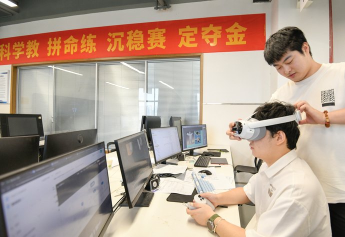 大赛临近,选手们都在做着最后的准备。“现在选手们平均每天的训练时长为14个小时左右,希望他们保持自信状态,从容不迫走上赛场,为学校再创佳绩。”王斌说。