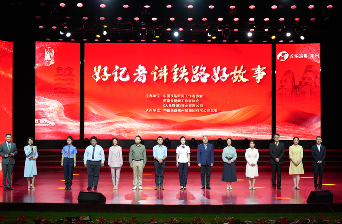 活动现场,12位来自铁路系统和河南省媒体的记者代表依次登台,他们或娓娓道来,或慷慨激昂,以真挚情感和鲜活事例,讲述铁路发展进程中的难忘篇章——有回望抗战烽火中的红色记忆,有再现中欧班列和高铁建设的辉煌跨越,也有记录一线职工风雪坚守、默默奉献的感人瞬间。记者们声情并茂的讲述不仅展现出新闻工作者“脚底板下出新闻”的“四力”践行,更以真情实感传递了铁路人的责任与担当。一个个故事让观众仿佛置身其境,现场氛围一次次被推向高潮。