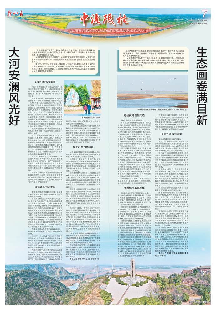 守好生态绿脉、激活经济动脉、厚植文化文脉,当下的郑州,在黄河重大国家战略中站到了更高起点。牢记领袖嘱托、践行省委要求,一步一步向前走、一年一年抓落实、一张蓝图绘到底,以久久为功护黄河岁岁安澜,以务实重做构筑高质量发展基底,持续深耕黄河文化内涵与资源禀赋,持续书写新时代的“黄河故事”“郑州故事”,我们定能推动国家中心城市建设再上新台阶,让黄河真正成为造福人民的幸福河,为奋力谱写中原大地推进中国式现代化新篇章作出郑州新的贡献!