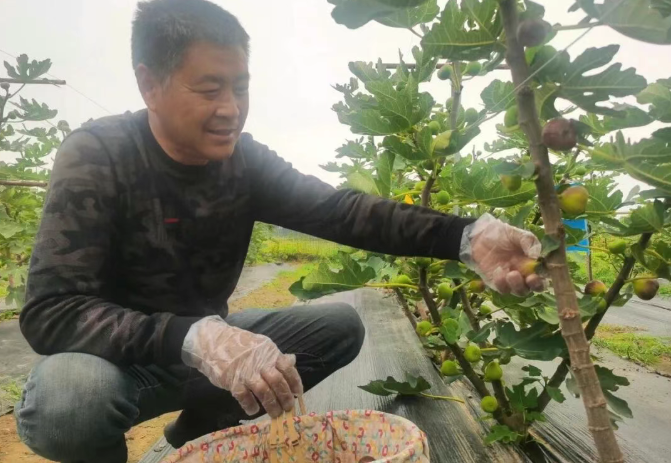 无花果是从去年开始种植的,王瑞玲说他们夫妻俩先后到过长垣、山东、河北等地,参观那里的无花果园,学习无花果的种植技术,从育苗到栽种再到后来的管理,步步为营,业精于勤,“上底肥都是农家肥和黄豆有机质,防虫害不打农药用黄蓝粘虫板。”蔡庆林在一旁补充说。夫妻俩凌晨5点起床,赶到无花果园的首要任务就是驱赶麻雀、灰雀等鸟们,无花果太甜了,这些鸟们都喜欢吃甜食,驱赶不及时,熟果就被它们盗食了。白天一般是在果园内给果树打岔,通风透光,为无花果营造一个良好的生长环境。