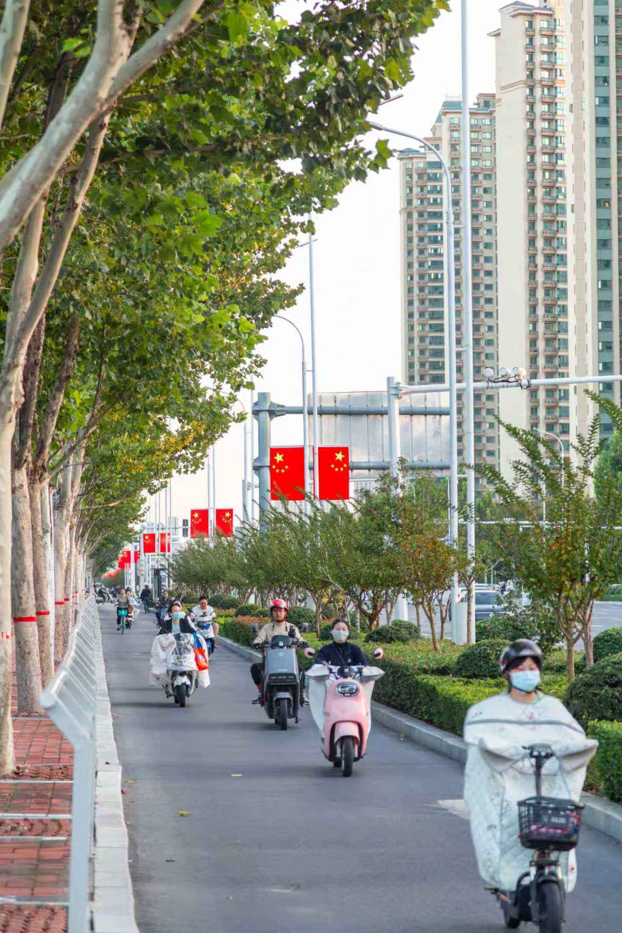 “这国旗一挂,过节的味儿一下子就浓了!”9月24日清晨,路过第八大街的居民王女士,看着灯杆两侧整齐的五星红旗,忍不住掏出手机拍照。为营造庄严热烈的国庆氛围,经开区严格落实郑州市相关部署,在航海东路(机场高速—东三环)、第八大街(经北六路—南三环)等主次干道及城市主要出入口,集中悬挂标准化国旗800余面,其中600面是往年国旗经清洗、检修后循环利用的。