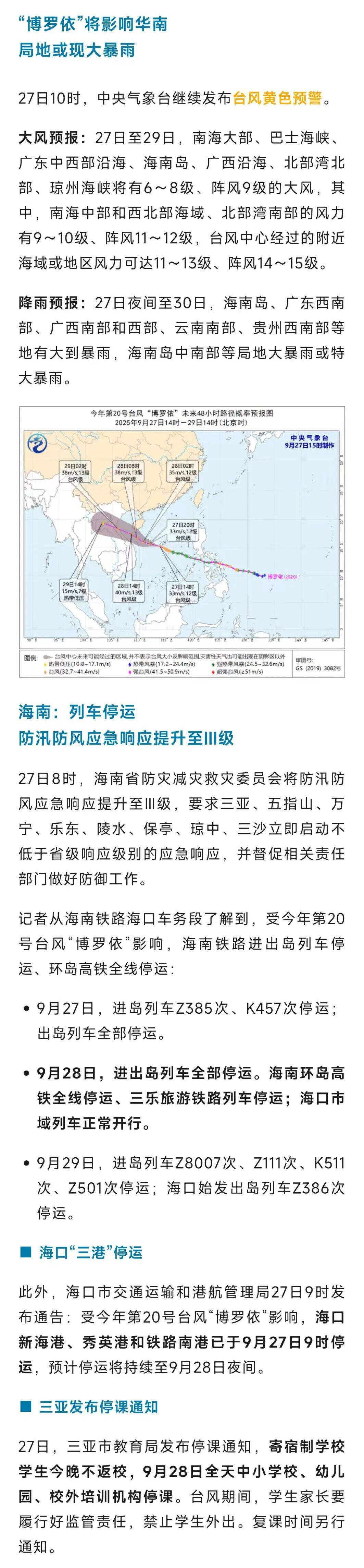 今天(27日),今年第20号台风“博罗依”(强热带风暴级)已加强为台风级,预计“博罗依”将于28日白天掠过海南岛以南海面。 受其影响,华南沿海和南海海域将有强风雨天气。