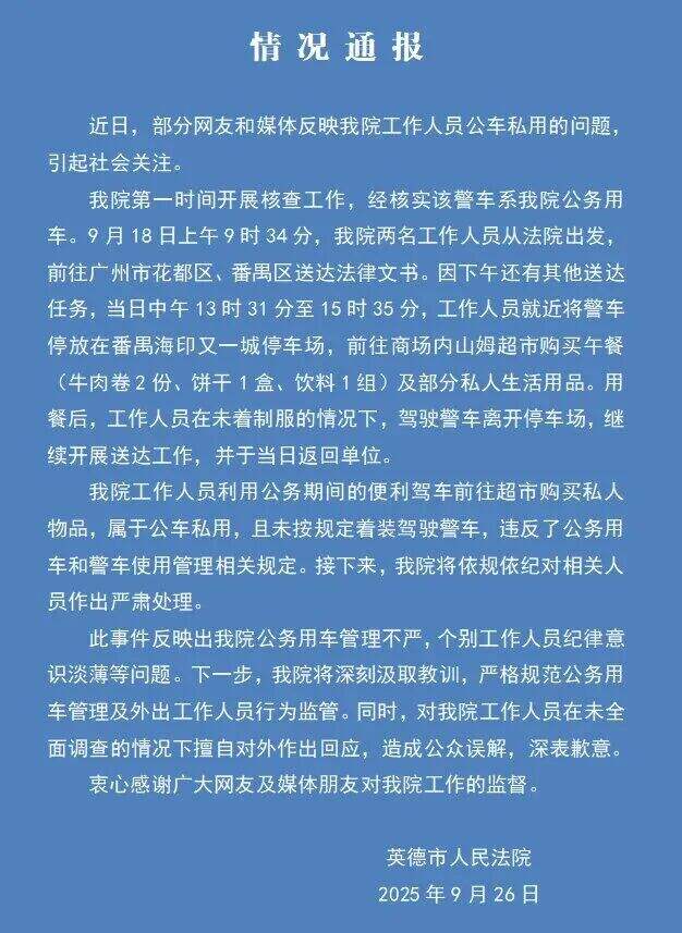 9月26日,广东英德市人民法院发布情况通报: