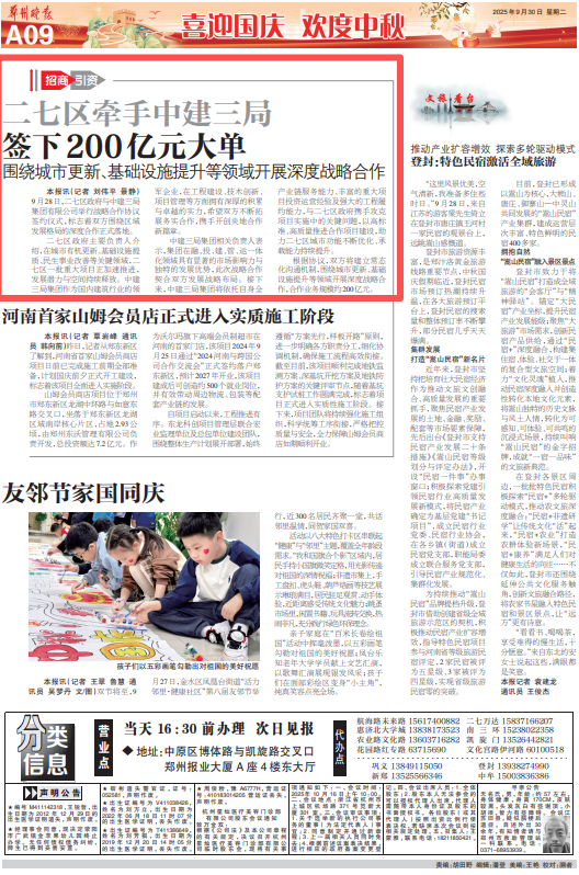 9月28日,二七区政府与中建三局集团有限公司举行战略合作协议签约仪式,标志着双方围绕区域发展格局的深度合作正式落地。
