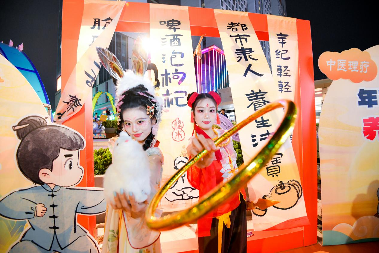 活动现场,在中医望闻问切的同时,精彩活动不断上演:机器狗灵活翻身、可爱笔芯的瞬间,引来阵阵惊呼;潮流乐队带来多首流行金曲和经典老歌,旋律悠扬;魔术师手法精妙,与观众频频互动,还有“玉兔”“哪吒”等coser穿梭活动现场,与群众亲密互动……当千年传承的草药香,遇上现代生活的烟火气,碰撞出的不仅是热闹,更是传统智慧融入日常的新可能。
