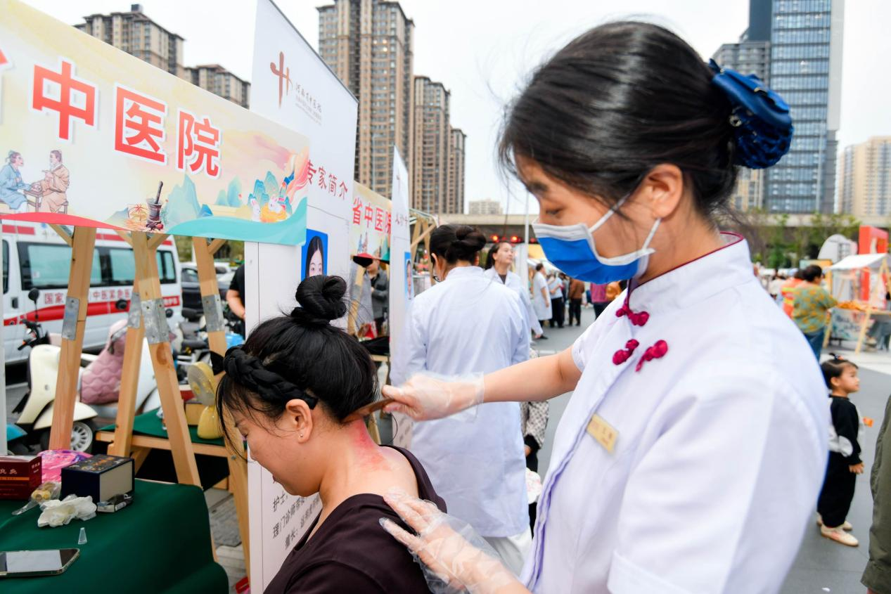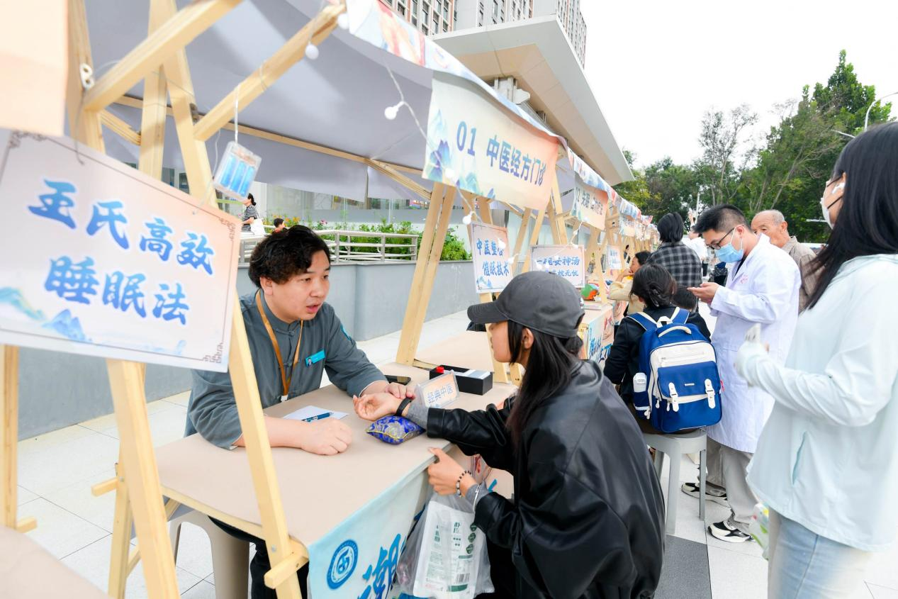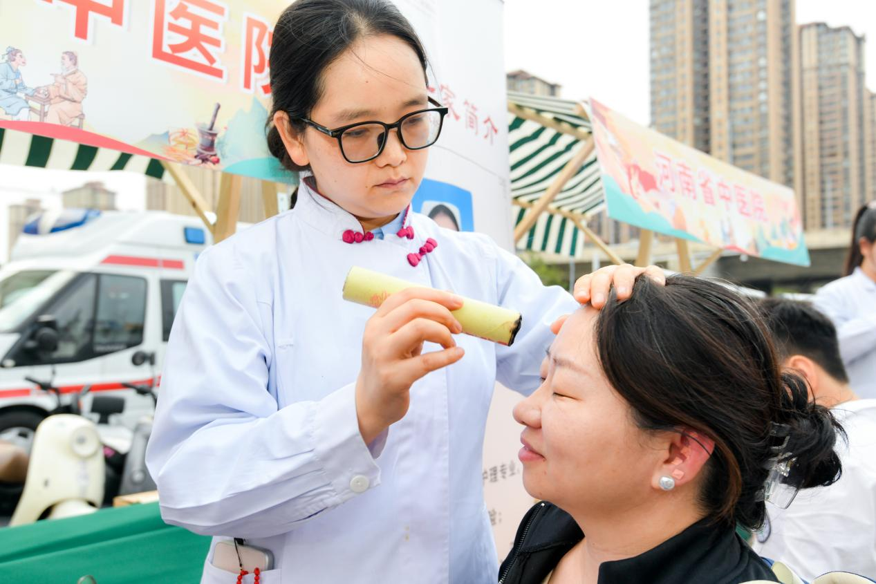 活动现场分区明确、内容丰富多彩,既有实用的养生科普,也有中医药文化趣味体验,吸引了不少居民驻足参与。“此次活动,我们沟赵中心卫生院中医相关学科全体出动,此外还有河南省中医院10余位名医及各科室专家助阵,共设置摊位60个,涵盖经典中医门诊、针灸科、推拿科等,不仅现场提供义诊咨询、把脉问诊等诊疗服务,还把推拿按摩、耳穴压豆、刮痧拔罐等中医传统技法带到市民身边,让信中医、用中医、爱中医逐步成为大家的共识。”高新区沟赵中心卫生院中医发展科主任王申路告诉记者。