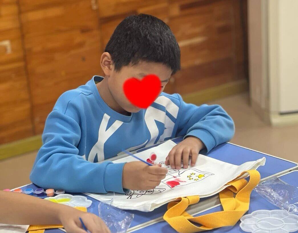 在志愿者的耐心引导和鼓励下,孩子们兴致勃勃地拿起画笔,挑选着自己喜爱的颜色。他们神情专注,用心地为天安门涂上庄严的红色,为天空描绘出清澈的蓝色,让飞机在七彩云霞中穿梭。每一个小小的帆布包,都变成了孩子们挥洒创意与表达情感的画布。活动现场充满了欢声笑语,气氛温馨而融洽。