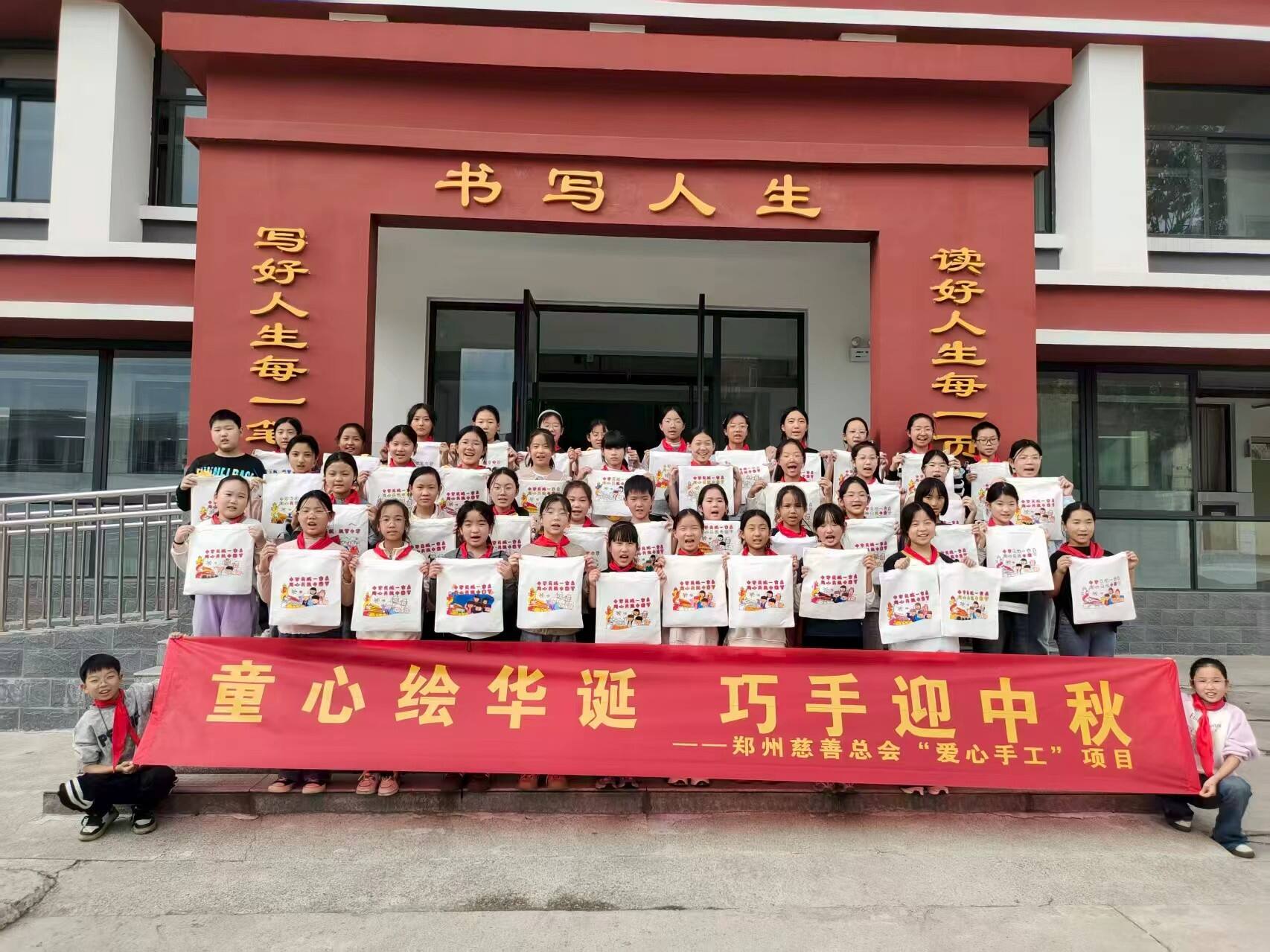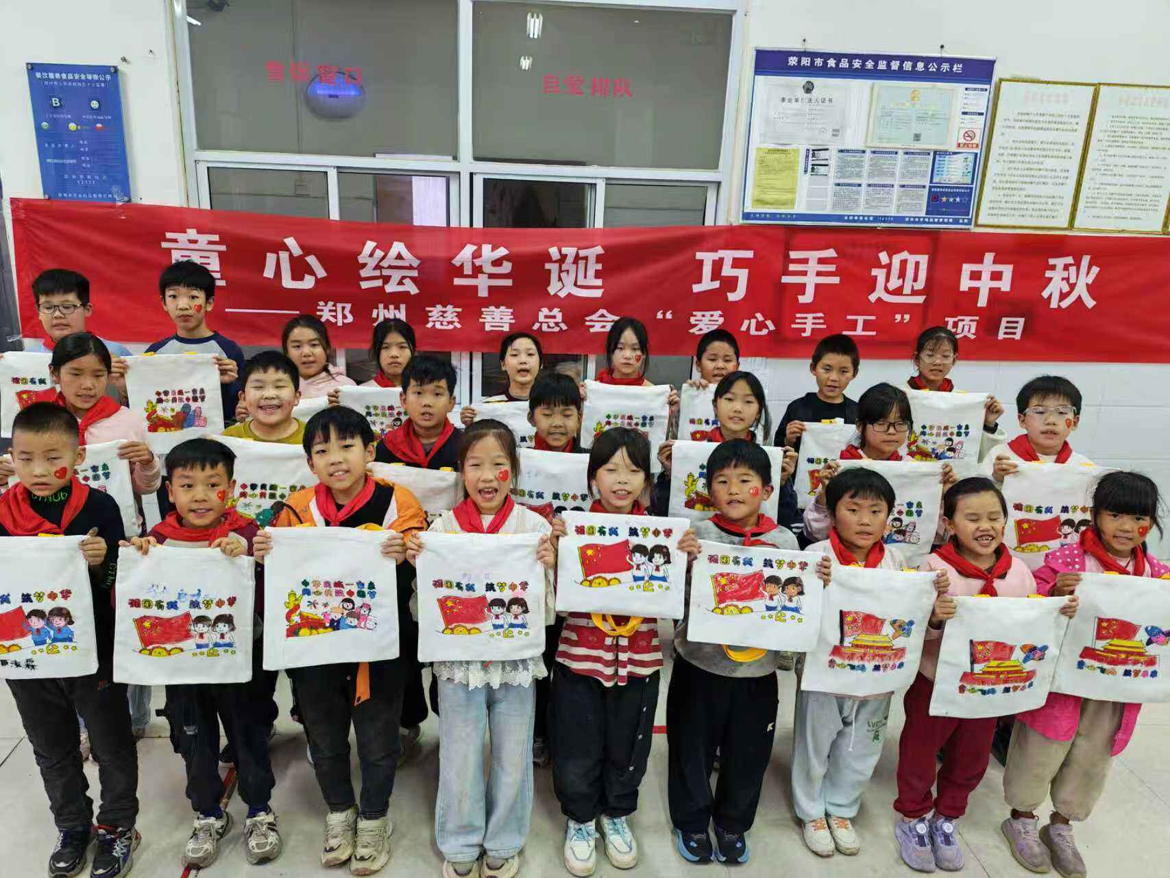 为庆祝中华人民共和国成立76周年,迎接中华民族传统中秋佳节,进一步增强爱国主义精神,培养孩子们的归属感和国家认同感,9月29日,郑州慈善总会“爱心手工”项目联合登封市东华镇中心小学、登封市石道乡中心小学、荥阳市崔庙镇翟沟小学三所乡村小学成功举办了“童心绘华诞 巧手迎中秋”大型爱国主义教育主题活动。