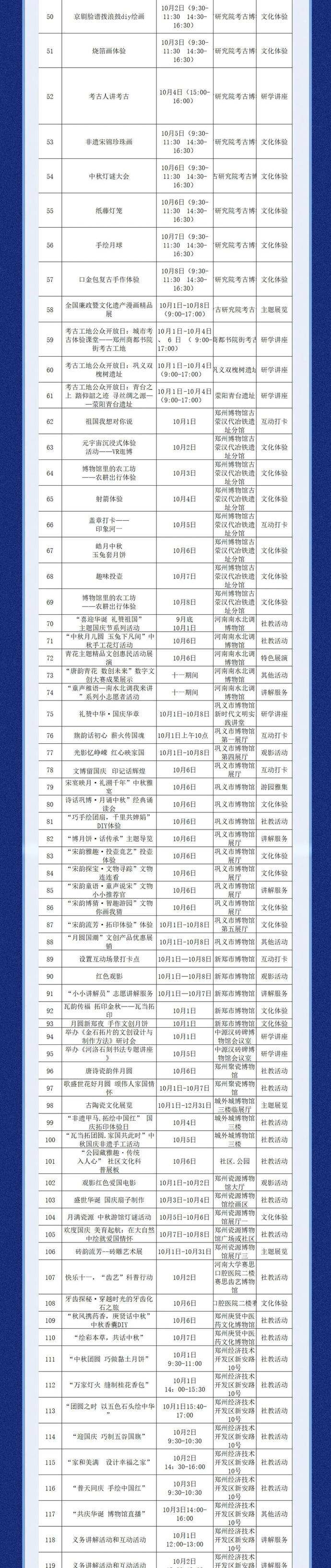 针对双节期间市民文化需求激增的特点,在市区郑州博物馆、郑州商代都城遗址博物院、郑州二七纪念馆等6家重点国有博物馆实行延时开放服务,确保市民及游客有充足时间参与活动、感受文化魅力。