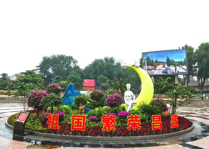 公园以“传承红色基因、共庆盛世华诞”为核心,通过多元化的场景布置将爱国情怀融入公园的每一个角落。西大门、下沉广场主景点、东园中间门、绿韵景区等多个区域进行了美化彩化,选用红色鸡冠花、黄色孔雀草、橙色孔雀草等象征热情、繁荣与吉祥的时令花草26400余盆,通过巧妙的色彩搭配与图案设计打造了系列主题景观,其中,西园“太湖石韵·童梦花昌”景点灵动活泼,“盛世映月”景点气势恢宏,成为游客热门打卡点。