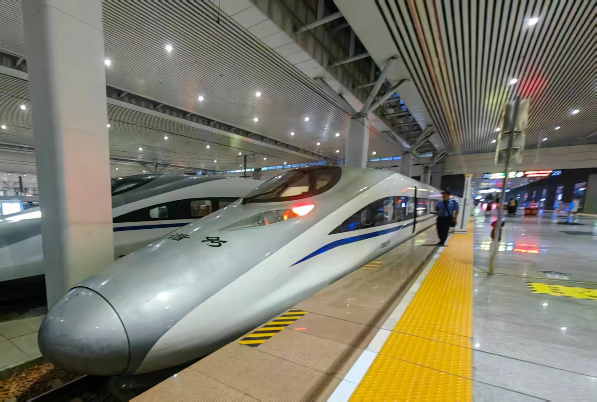 9月29日23:00分,首趟“夜高铁”郑州东至上海虹桥站G4244次列车由郑州客运段高铁四队昆明四组担当,满载着旅客在夜幕下离开郑州东站。