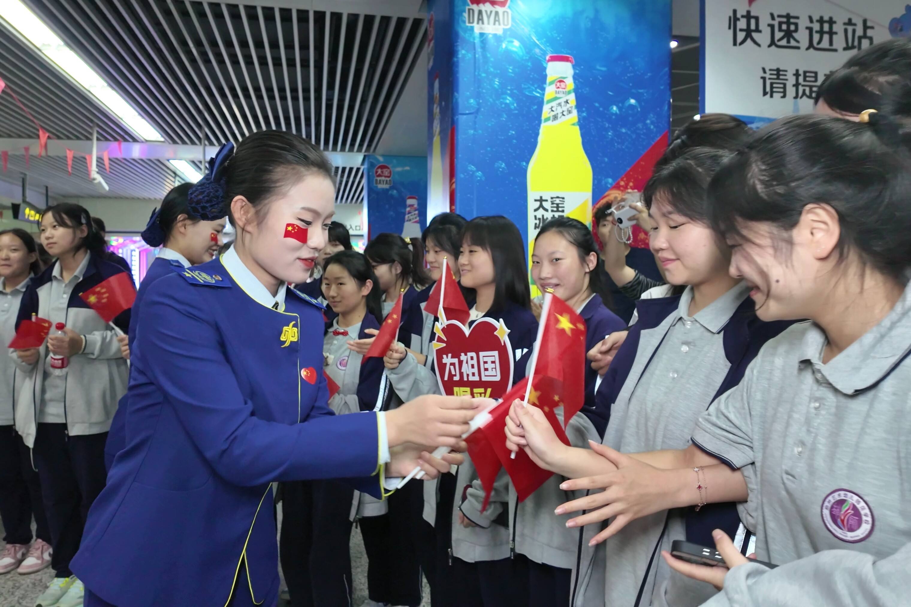 而《如愿》的婉转曲调,则静静诉说着一代代奋斗者未曾改变的初心,每一个跳动的音符,都在回溯中国的光辉岁月;每一句滚烫的歌词,都在生动诠释着时代强音。闻声而来的候车旅客纷纷驻足,主动接过工作人员递来的国旗,伴随旋律轻轻挥舞。大家纷纷举起手机,定格下这一温情又热血的瞬间。