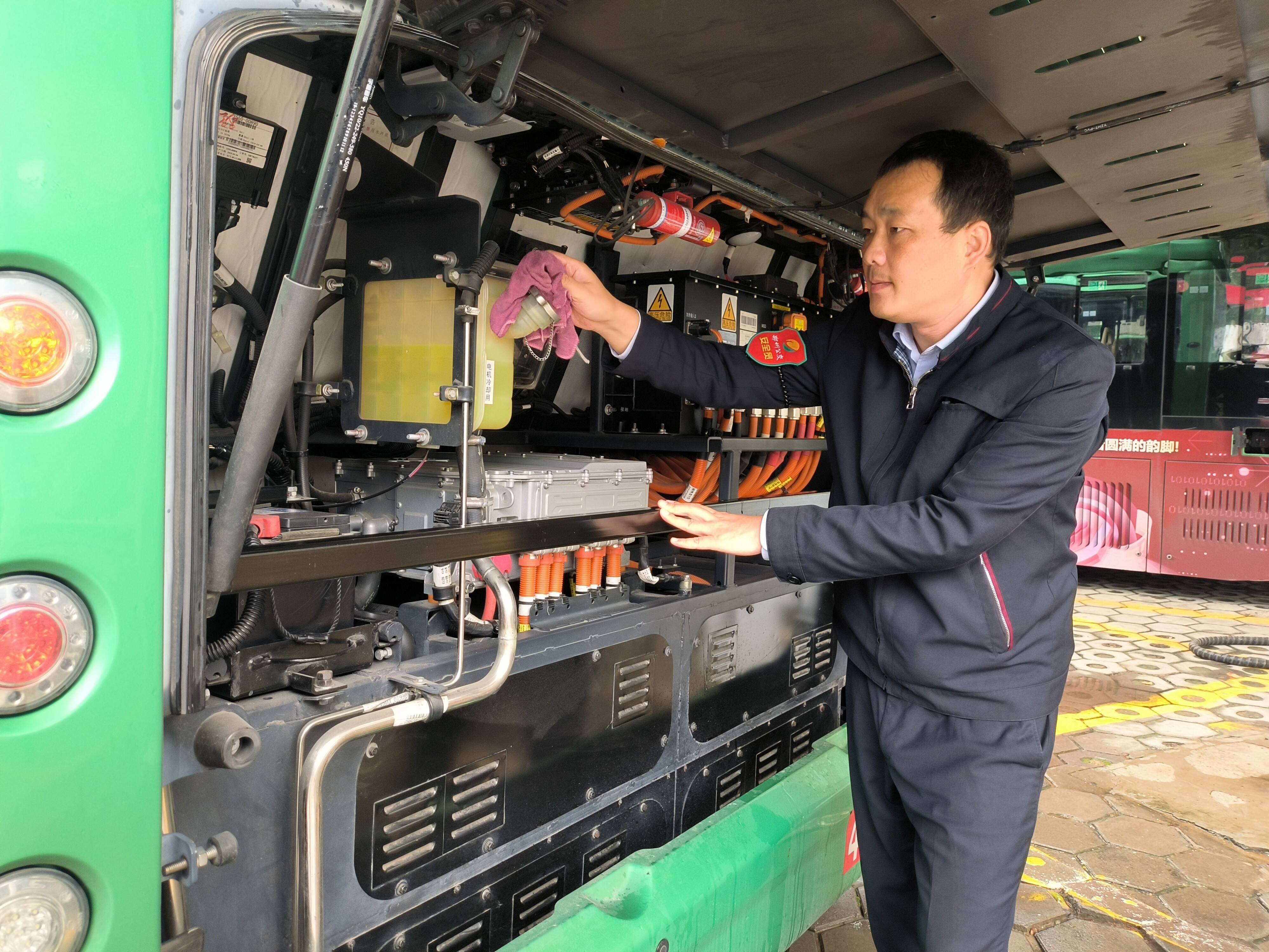 “轮胎纹路里卡了小石子要抠掉,刹车灵敏度得再试一遍,国庆假期游客多,安全容不得半点马虎。”丁晓广蹲在车旁,手里拿着检查锤敲了敲轮胎,指尖划过轮毂时,能看到常年操作留下的薄茧。这样的例行检查,他每天要花20多分钟,从车辆油液到车内扶手的牢固度,12项流程一项不落。6点整,首班车准时发车,他对着乘客点头微笑:“早上好,欢迎乘坐!”