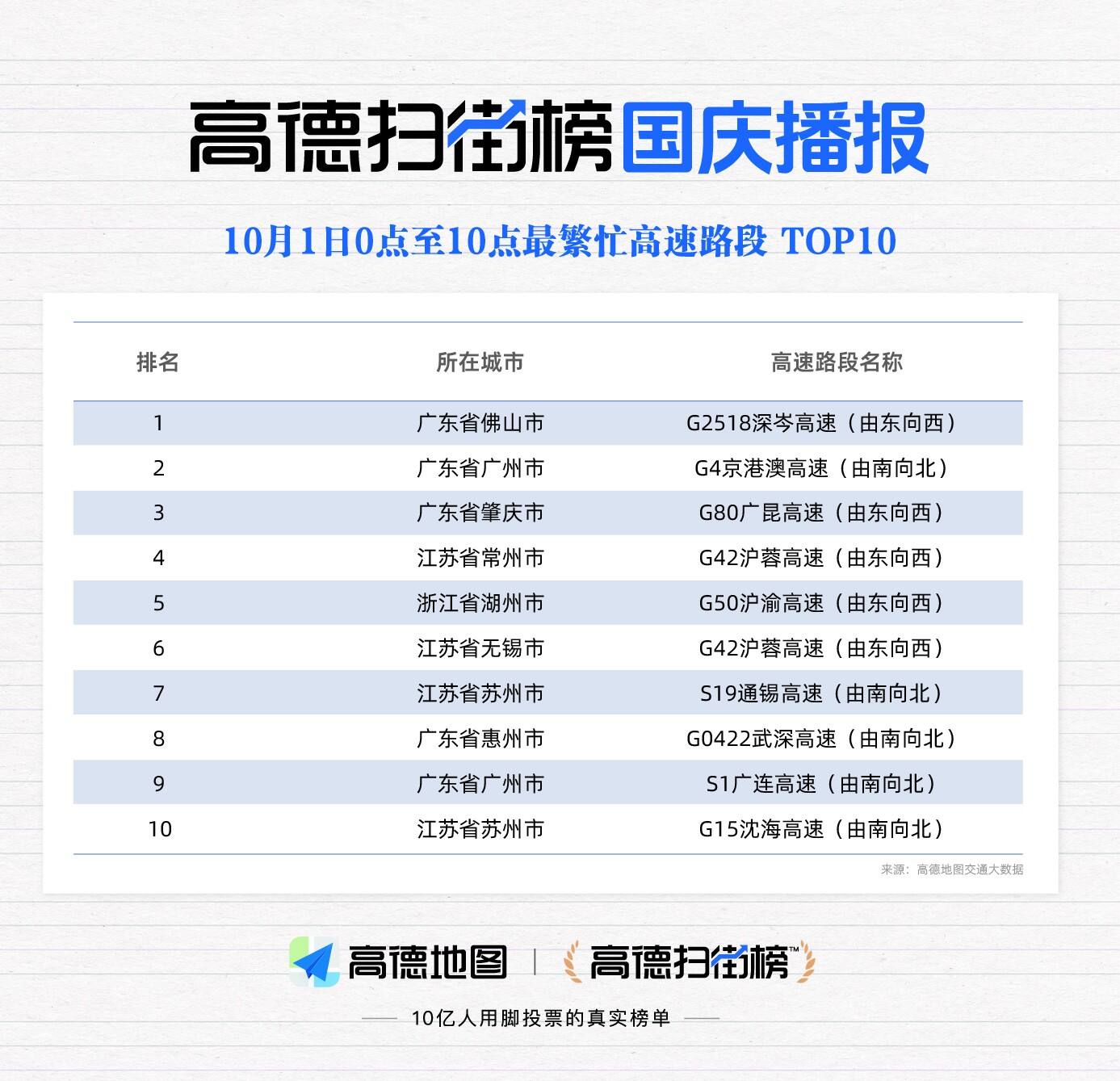 据交通运输部预测,今年自驾仍是公众出行的主要方式。高德交通大数据显示:10月1日0点至10点,全国十大繁忙出程高速路段中,长三角与粤港澳大湾区各占一半。高德提示,组队自驾的公众,可通过高德搜“组队”功能,完成组队后即可查看所有成员实时位置,导航时系统会同步最优路线和位置信息,支持跨城骑行、自驾游等场景。