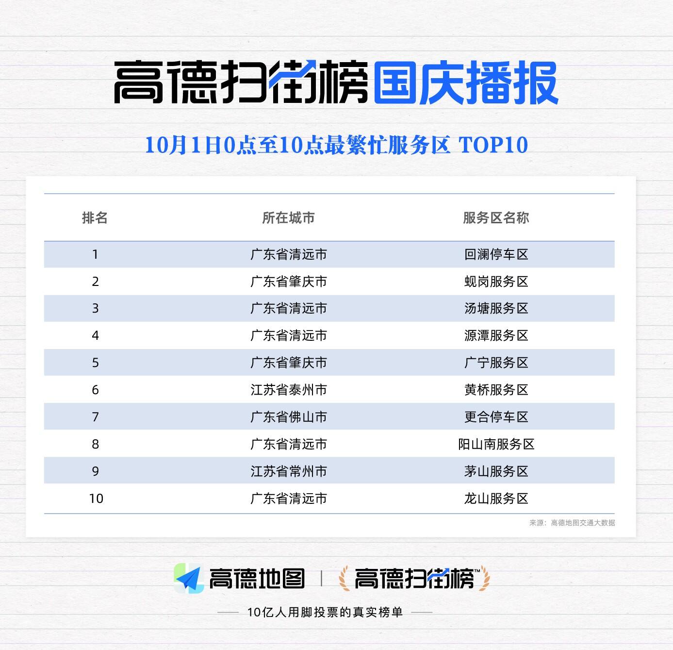 高德交通大数据还显示,截至1日上午10点,成都怀远古镇、阿坝九寨沟、南京栖霞山风景名胜区、烟台山景区、北京明十三陵等景区周边交通繁忙。