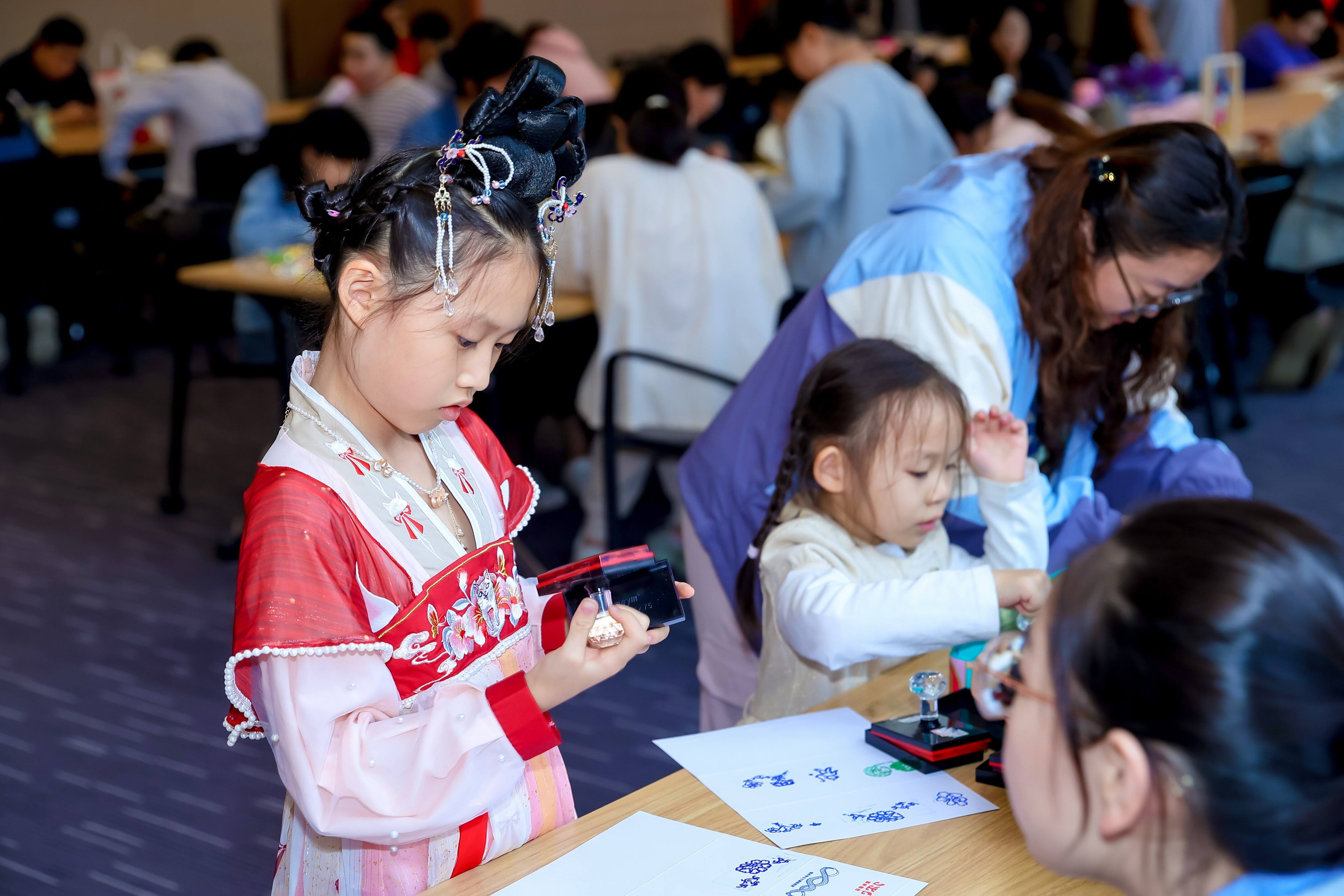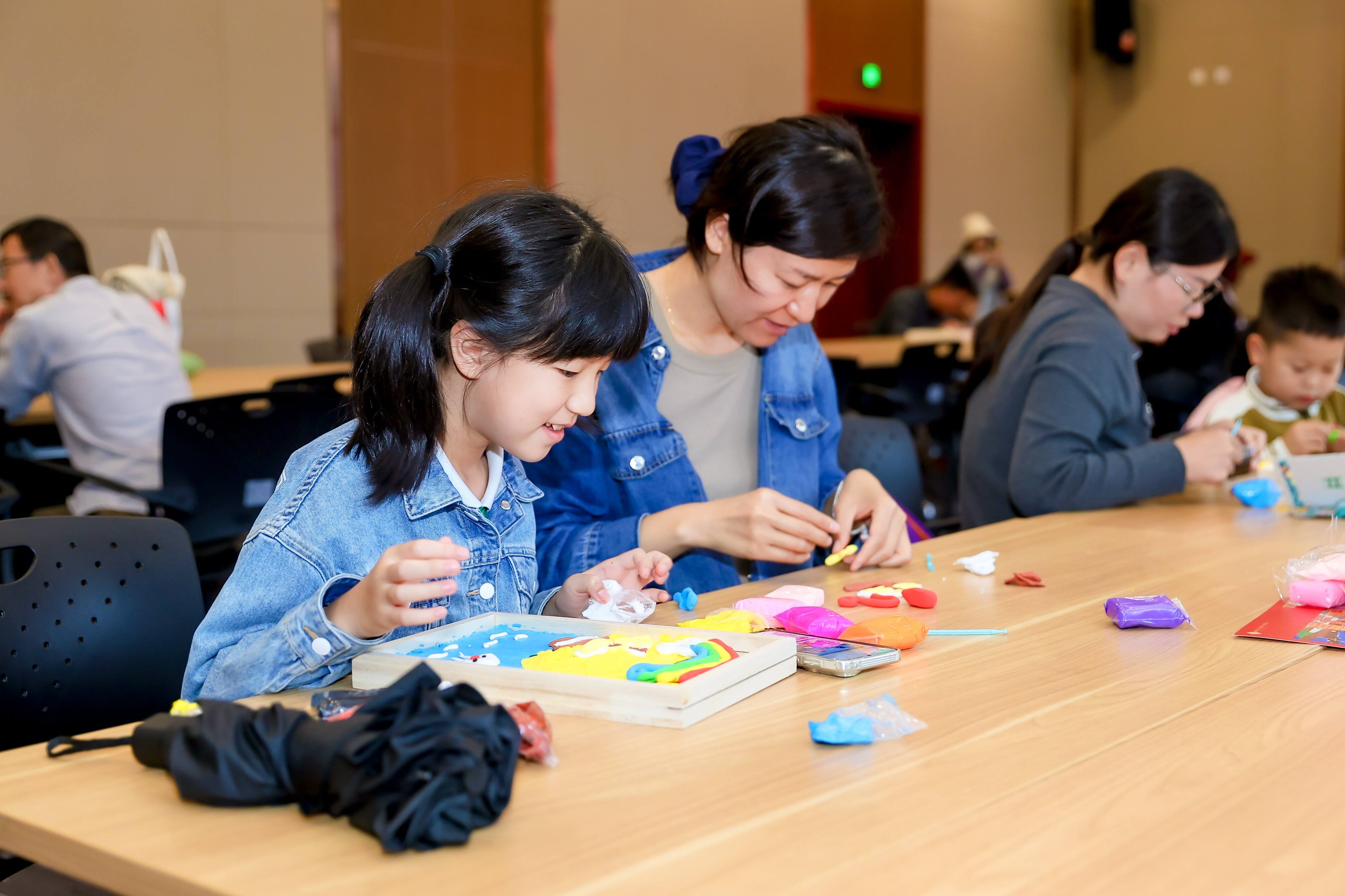 二楼报告厅内,黏土相框画活动同样人气爆棚。活动现场,9岁的小朋友波波在妈妈的帮助下,正用红色黏土仔细地制作国旗图案。“我们要把这个相框画放在家里最显眼的位置。”波波妈妈笑着说,“这是孩子献给祖国母亲最好的生日礼物。”