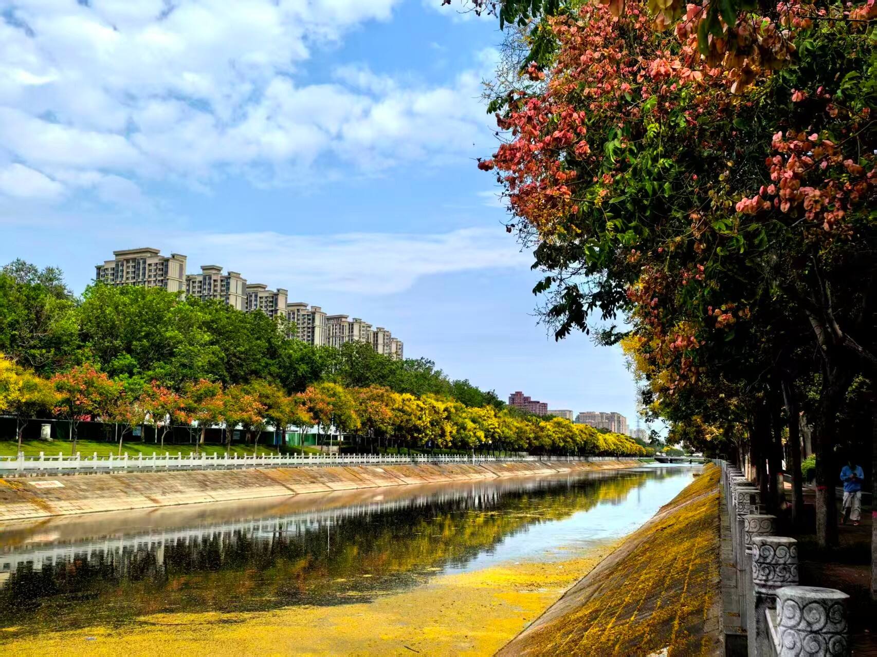 节日前后,郑州市城管局城区河道事务中心运用“加减乘除”工作法,推进“两河一渠”高效能河区治理,为市民打造休闲游玩好去处:增加延缓清扫的落花区域,提升市民节日观赏游玩体验;启动绿化植被全面修剪“瘦身”,及时对绿化带内杂物进行集中清运;根据秋冬季节特点开展升坝蓄水工作,对水面漂浮物、水生杂草等进行“地毯式”打捞,保障河道生态与景观功能稳定;持续排查修复河道沿线损坏的安全护栏、警示标识、救生设施等,筑牢安全防线。