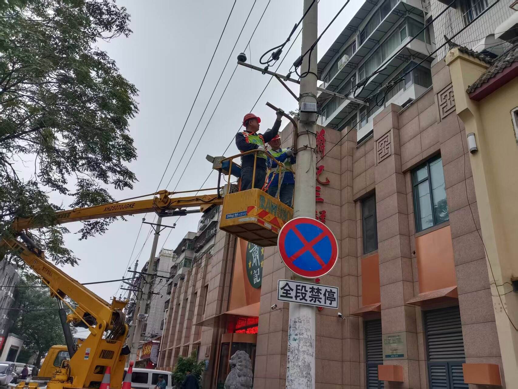 针对近期阴雨天气可能导致的灯杆锈蚀、泄露值大以及线路老化松动等问题,郑州市城管局城市照明和绿化景观服务中心采取网格化巡查方式,加大人流密集区和夜间巡查力度,持续对辖区内照明设施进行全面排查与检修,特别对金水路、紫荆山立交、金水立交等重点区域的路灯、变压器、控制箱及供电线路进行系统性安全检查和维护,及时响应和处理市民关于照明问题的诉求,确保故障快速处置。