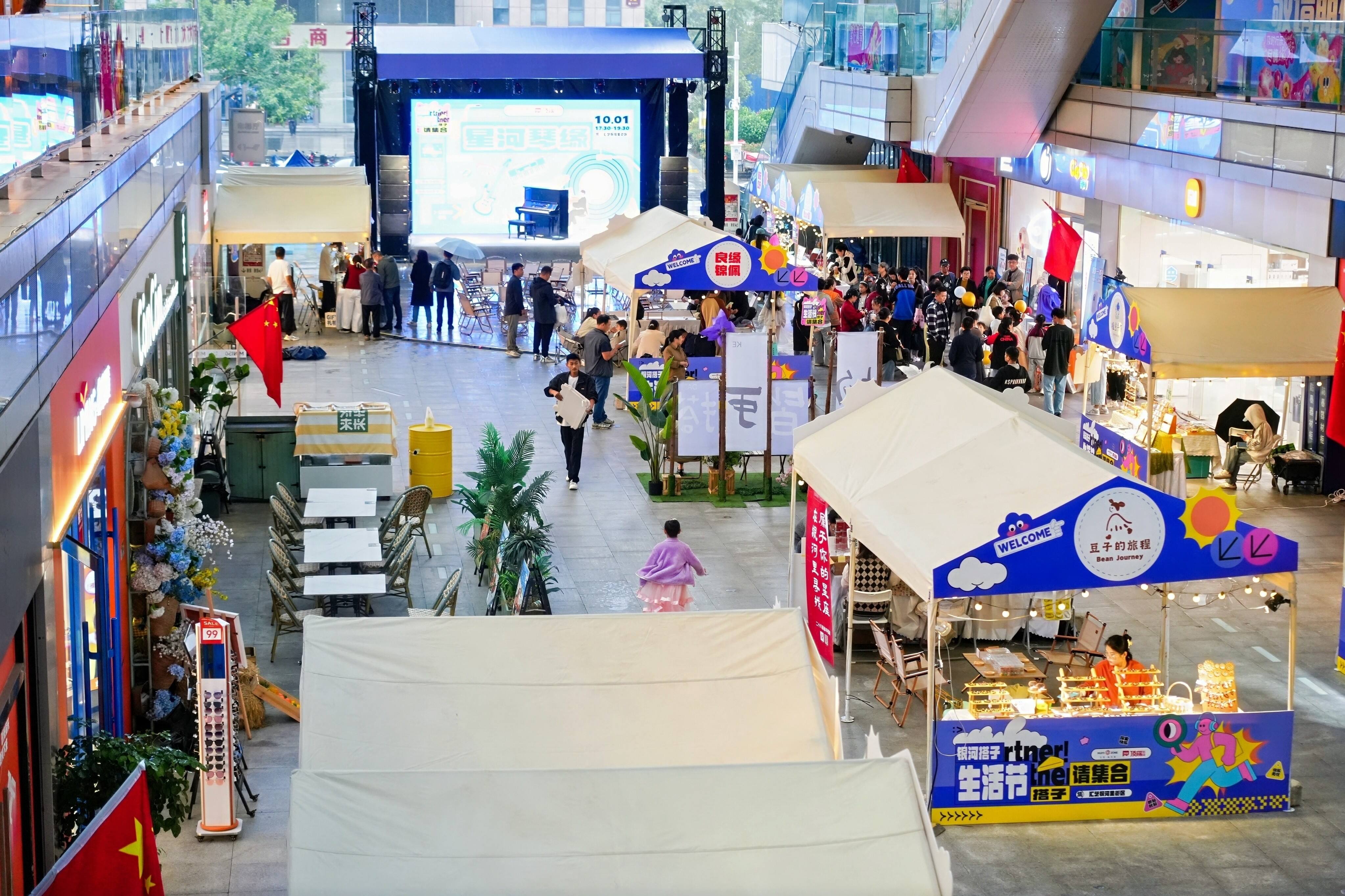 10月1日下午,为期3天的“银河搭子生活节”在郑州汇艺银河里正式开启,让秋雨中的汇艺银河里充满温馨浪漫气息。伞下是缘分,雨中是浪漫,帐篷下全是快乐踩着水坑也要来的饭搭子、披着雨衣也要拍的打卡搭子、捧着热咖啡也要聊的文艺搭子……
