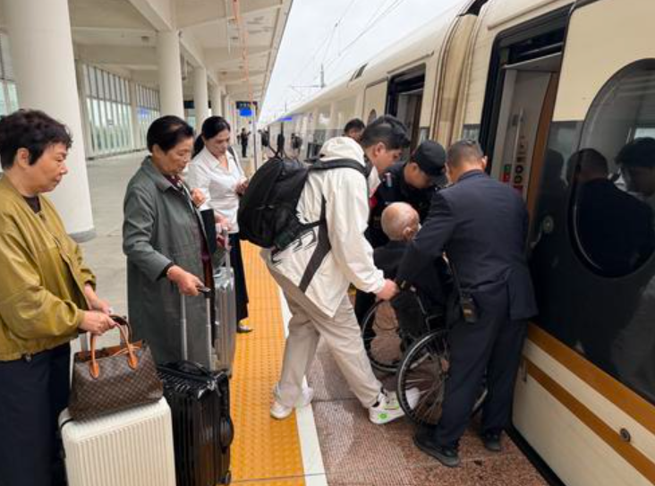 抵达站台后,胡朝军根据车票找到对应车厢,先将老人安稳扶上车并安排好座位,随后反复叮嘱旅客:“现金务必贴身保管,途中要看好行李,有需求可联系乘警和列车员。