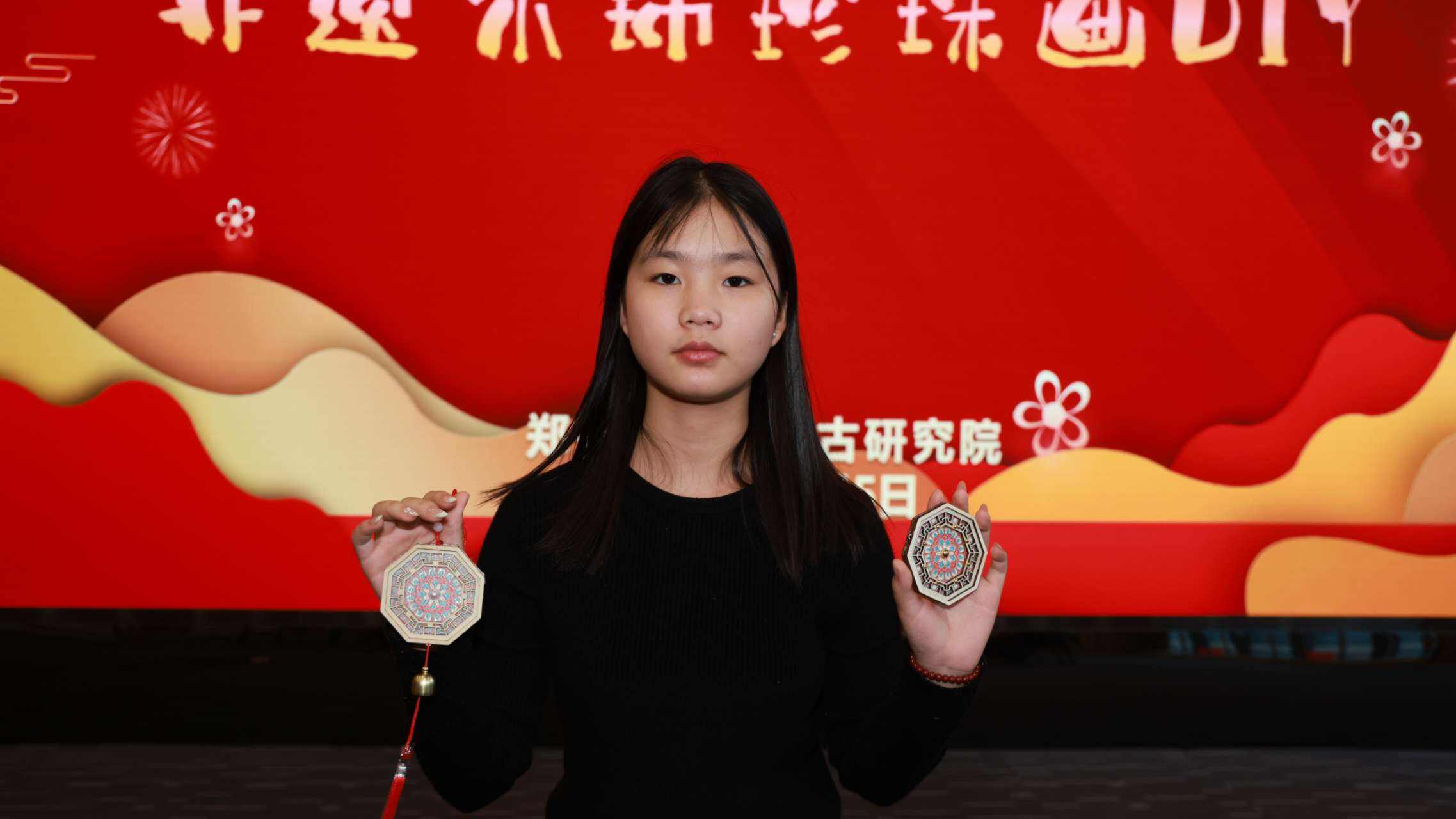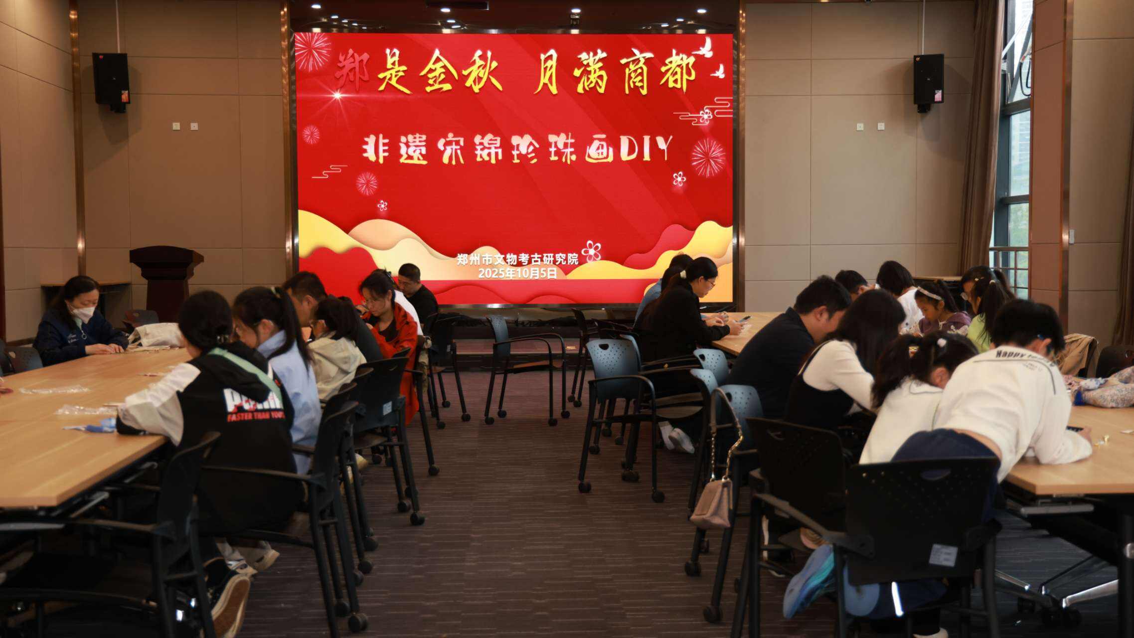 10月5日,“月满华章 知承千年”郑州市文物考古研究院2025庆国庆、中秋系列活动之“非遗宋锦珍珠画DIY”在郑州市文物考古研究院考古博物馆二楼报告厅举办。精美的非遗宋锦在市民游客的认真创作下变成了一个个实用的“小挂件”,游客们在带走自己手工成果的同时,也保留了一份佳节的“美好记忆”。