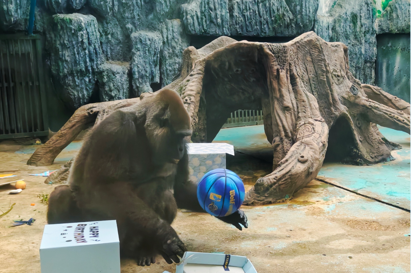 尼寇出生于1982年10月8日。今年,为了给“寿星”尼寇庆生,郑州市动物园工作人员提前精心筹备,不仅给它准备了新毯子、新玩偶、新篮球等生日礼物,还将现场布置得既温馨又活泼,吸引了不少市民游客前来。