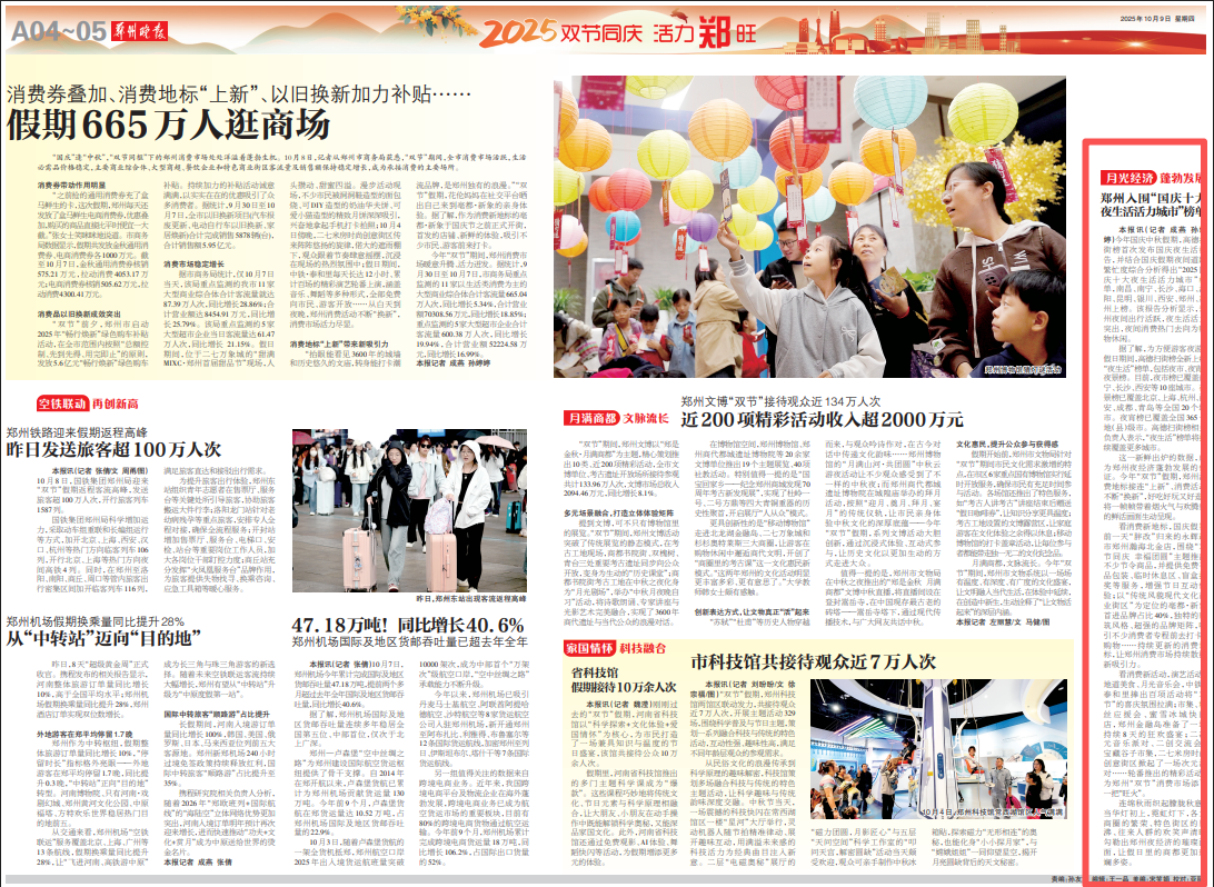 这一新鲜出炉的数据,成为郑州夜经济蓬勃发展的佐证。今年“双节”假期,郑州消费地标接连“上新”、消费活动不断“换新”,好吃好玩又好逛,将一帧帧带着烟火气与欢腾感的鲜活画面生动呈现。