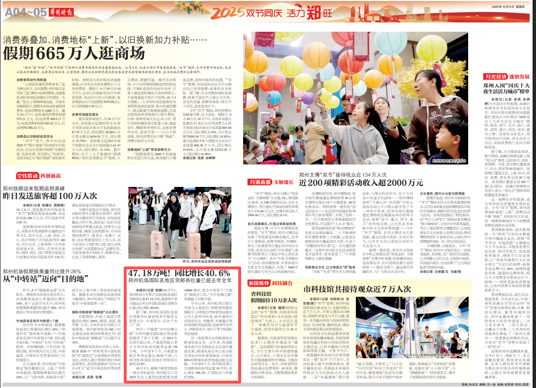 10月3日,随着卢森堡货航的一架全货机抵郑,郑州航空口岸2025年出入境货运航班量突破10000架次,成为中部首个“万架次”级航空口岸,“空中丝绸之路”承载能力不断升级。
