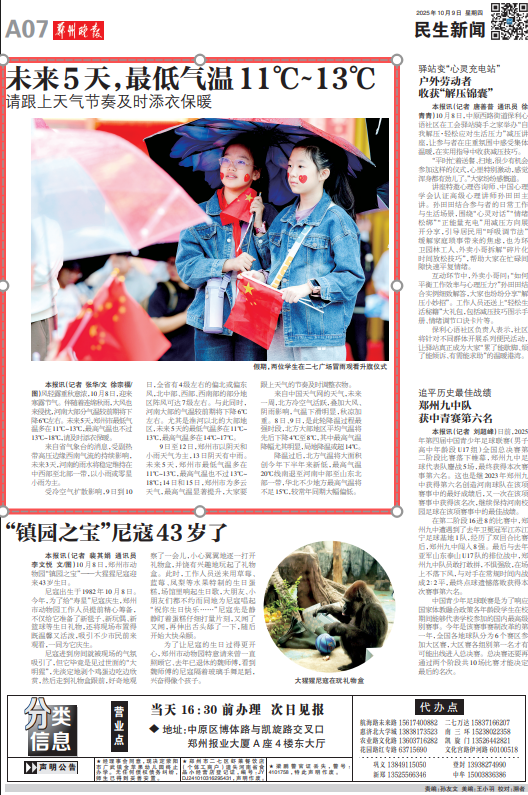 风轻露重秋意浓,10月8日,迎来寒露节气。伴随着连绵秋雨,大风也来侵扰,河南大部分气温较前期将下降6℃左右。未来5天,郑州市最低气温多在11℃~13℃,最高气温也不过13℃~18℃,请及时添衣保暖。