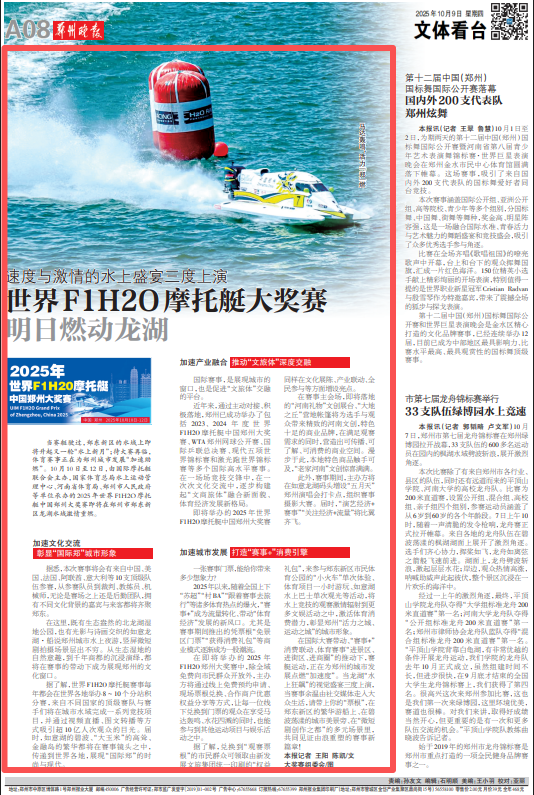 即将举办的2025年世界F1H2O摩托艇中国郑州大奖赛同样在文化展陈、产业联动、全民参与等方面增设亮点。