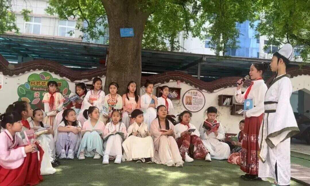 而校园里这棵200岁的皂荚树,它的树荫,是学校里的天然舞台,学生们在树下朗读、展示才艺、奔跑、欢笑。这样一位默默守护的“树爷爷”,用自己的方式,参与了树下每一位孩子的童年。