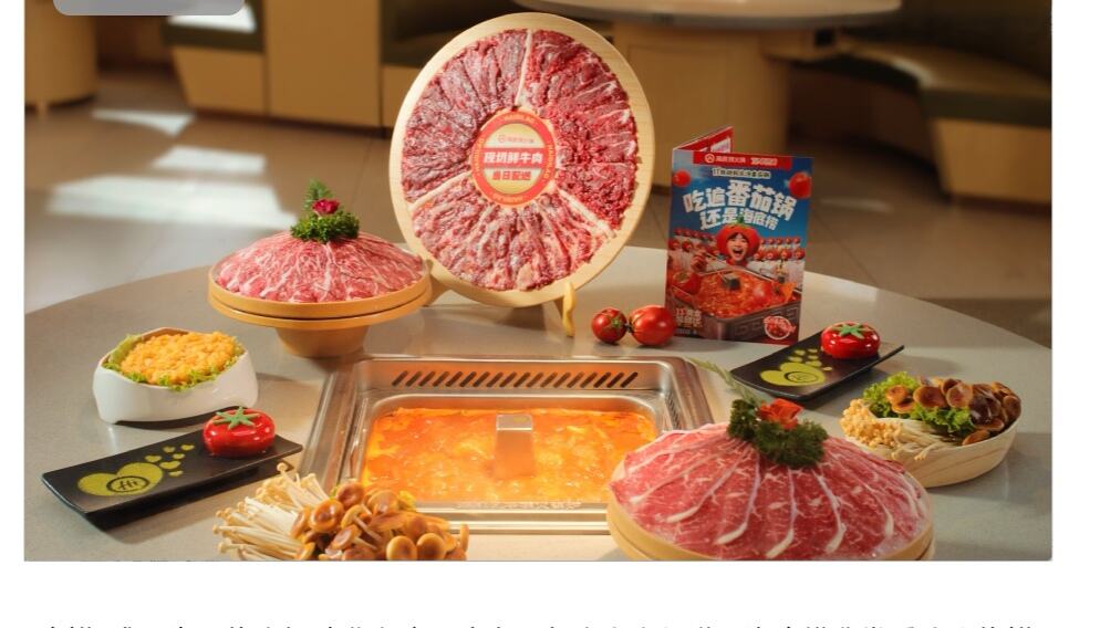 不少海底捞火锅门店改造升级为“海底捞鲜切工坊”后,鲜切肉品的点击率持续提升。截至2025年9月底,主打鲜切鲜活产品的标准版主题店已营业超100家,涵盖鲜切牛肉、鲜活海鲜、鲜切羊肉、鲜切脆皖鱼、鲜切黑猪等品类。