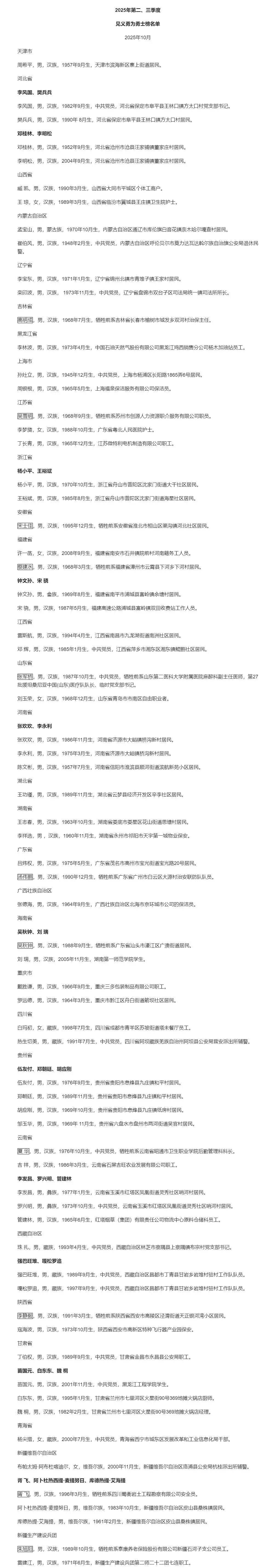 2025年10月9日,中央政法委在京发布2025年第二、三季度见义勇为勇士榜。根据网络关注度和各地各单位依规确认、推荐进行综合评审,共有69位见义勇为勇士光荣上榜。其中,来自河南的张欢欢、李永利、陈文彬三人光荣上榜。