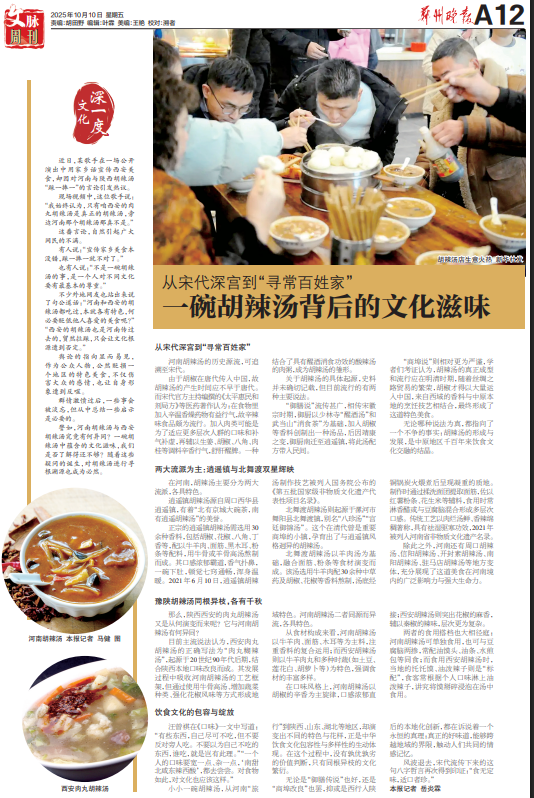 小小一碗胡辣汤,从河南“旅行”到陕西、山东、湖北等地区,却演变出不同的特色与花样,正是中华饮食文化包容性与多样性的生动体现。在这个过程中,没有孰优孰劣的价值判断,只有同根异枝的文化繁衍。