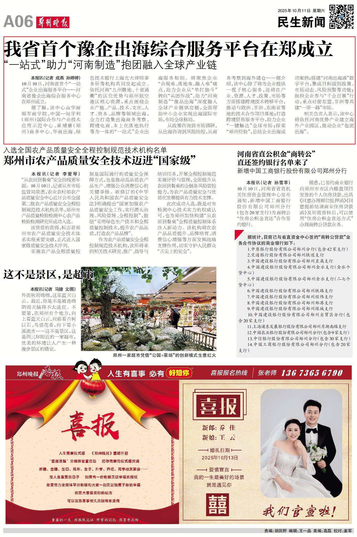 从政策咨询到市场调研,从出海咨询到风险防控,从商务考察到海外建仓……据介绍,该中心除了将为企业提供一揽子核心服务,还将在产业、资源、人才、政策、市场等方面搭建跨境技术转移平台,推动与欧洲、非洲、东南亚等地的技术合作项目落地;打造跨境贸易服务平台,助力企业“一键触达”全球市场;探索“郑州经验”,总结企业出海成功案例;搭建“河南出海通”数字平台,集成目标国别政策、市场动态、风险预警等功能;组织企业参与“千企百展”行动,重点对接东盟、非洲等共建“一带一路”市场。