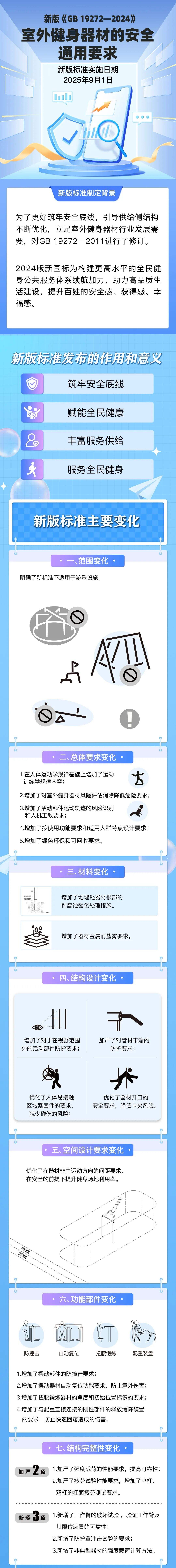 市场监管总局(国家标准委)发布的新版《室外健身器材的安全 通用要求》强制性国家标准近日实施。一图看懂十二个变化↓