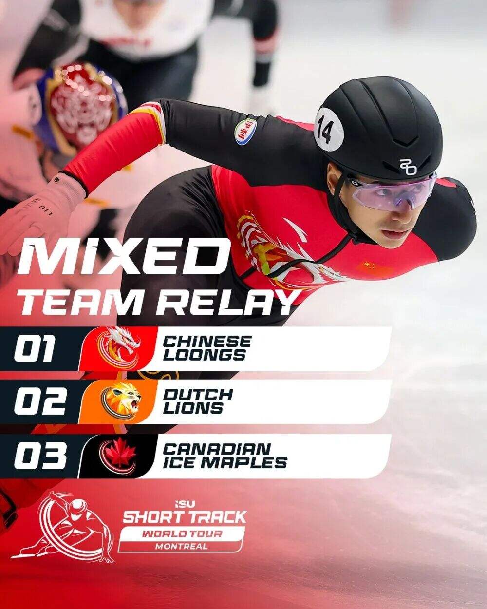 国际滑联官网消息,2025~2026赛季国际滑联短道速滑世界巡回赛暨米兰冬奥会资格赛蒙特利尔站当地时间12日收官,中国队在混合团体接力项目中夺冠,收获新赛季首枚金牌。